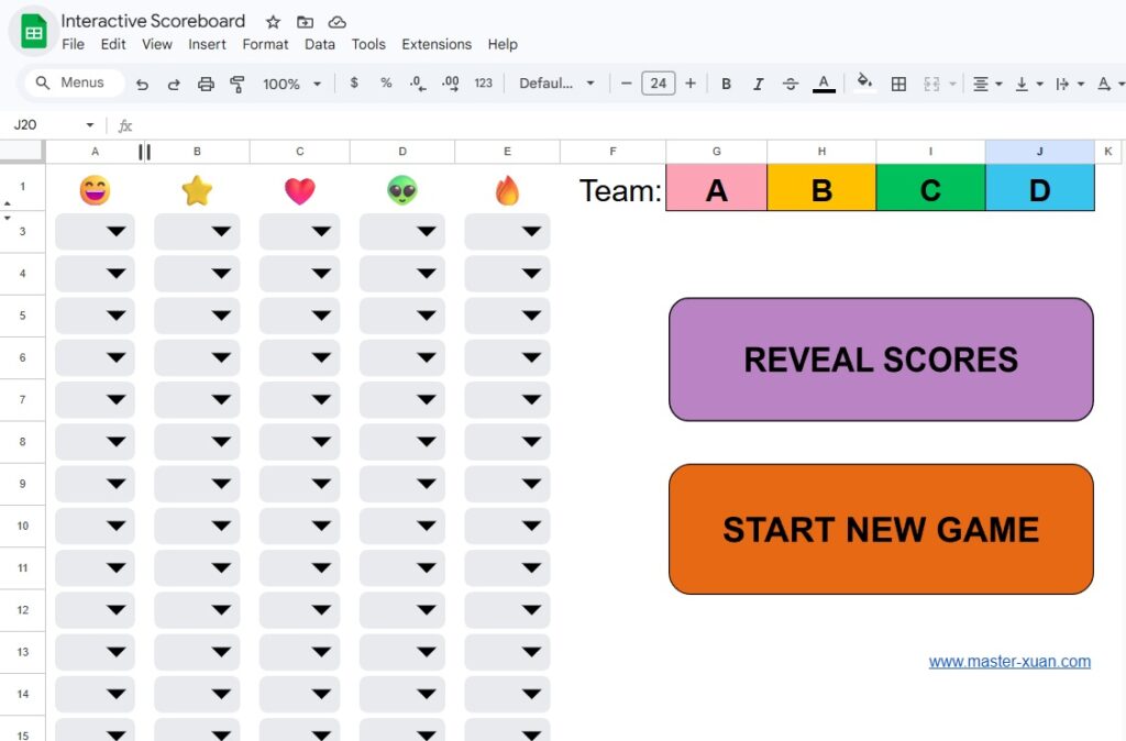 I created this Google Sheet scoreboard to handle all the game calculations automatically within the sheet. You have two easy options for using it: Automatic Mode (Recommended) or Manual Mode.